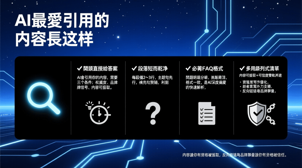 AI 只引用「可信、好用、結構清楚」的內容。
